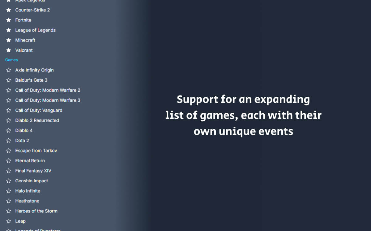 The app can automate scene switching and source toggling in OBS & Streamlabs, as well as dispatch game event data to a webhook for further processing and real time analysis.